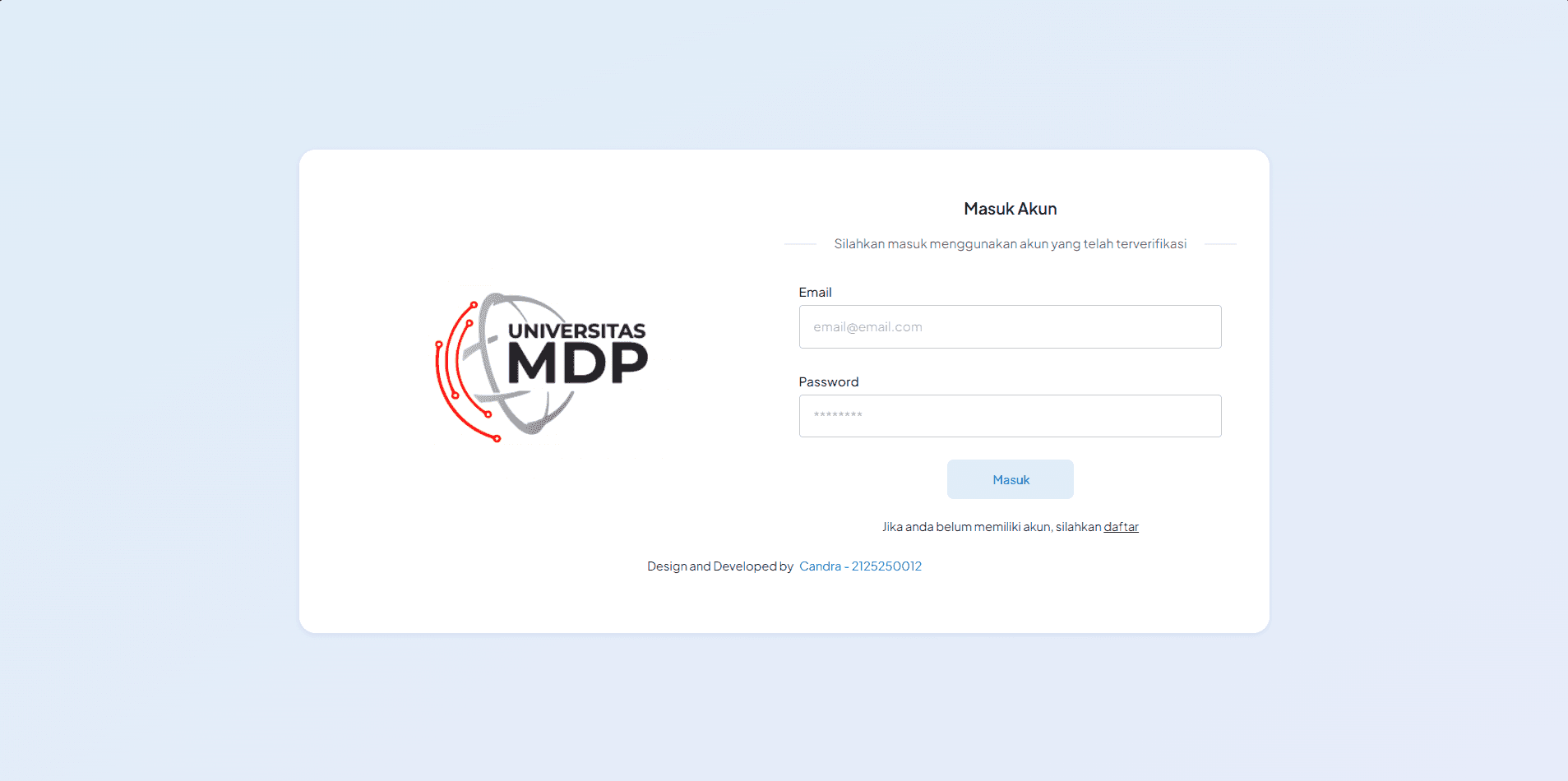 Project ini merupakan project berbasis web yang bertemakan Penerimaan Mahasiswa Baru dengan tujuan sebagai salah satu project Sertifikasi Profesi Web Developer. Website ini dibangun menggunakan framework Nuxt dengan TypeScript di sisi frontend untuk memastikan performa cepat dan tampilan yang interaktif. Di sisi backend, Laravel digunakan sebagai pondasi utama untuk mengelola data, autentikasi, serta integrasi dengan berbagai modul sertifikasi. Sementara itu, Tailwind CSS digunakan untuk mempercepat styling sekaligus menjaga konsistensi desain modern.